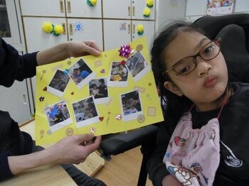 1年間の思い出をコラージュに...。今年度行なった活動風景を一枚の画用紙に思い出として、それぞれ自分の好きなもので飾り付け。作成しながら思い出を振り返りつつ、1年間の雰囲気をご家族と共有していただけたら良いなと思います!